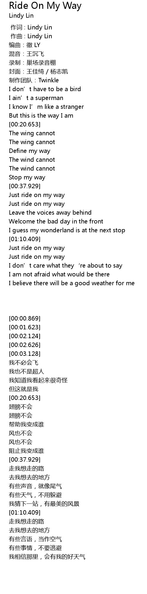 | [00:00.000] | 作词 : Lindy Lin |