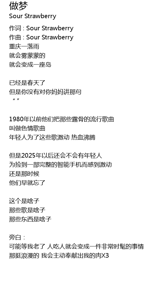 | 作词 : Sour Strawberry | |