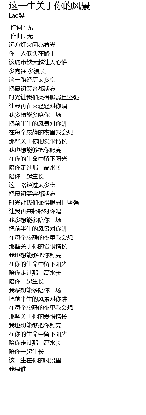 | [03:57.078] | zhe yi sheng zai ni de feng jing li |