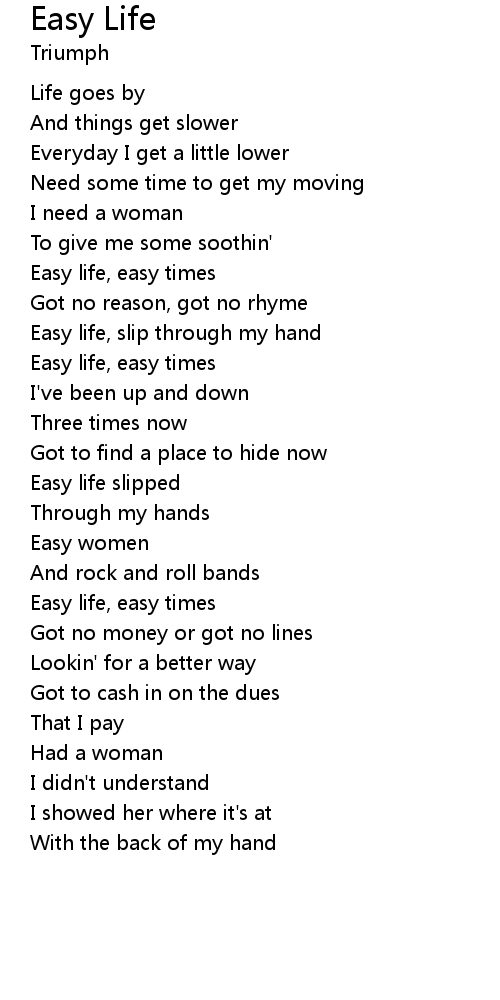 Easy life, slip through my hand |