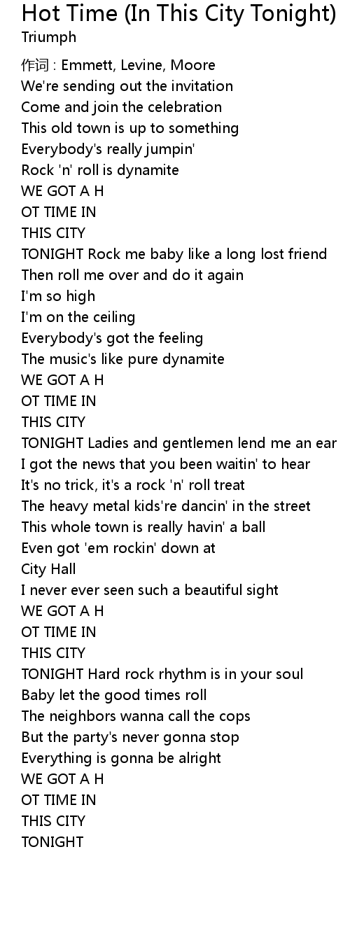 | Song | Hot Time (In This City Tonight) |