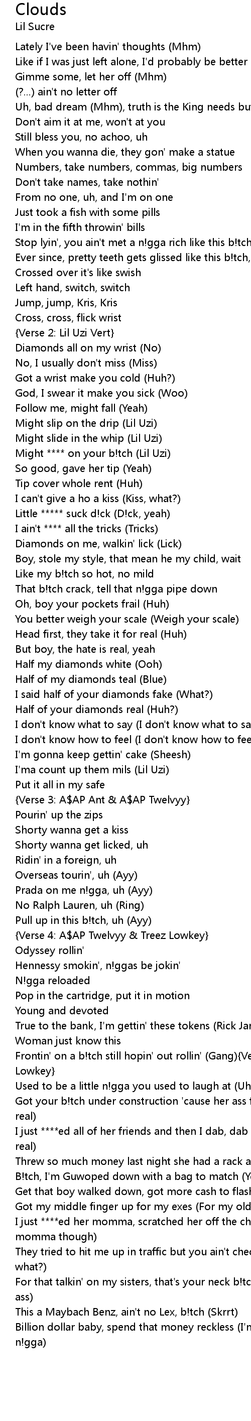 | [01:13.589] | Might slip on the drip (Lil Uzi) |