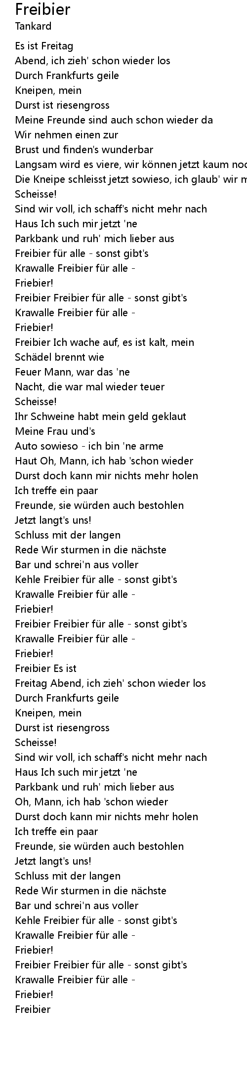 | Freibier Freibier fü r alle sonst gibt' s | |