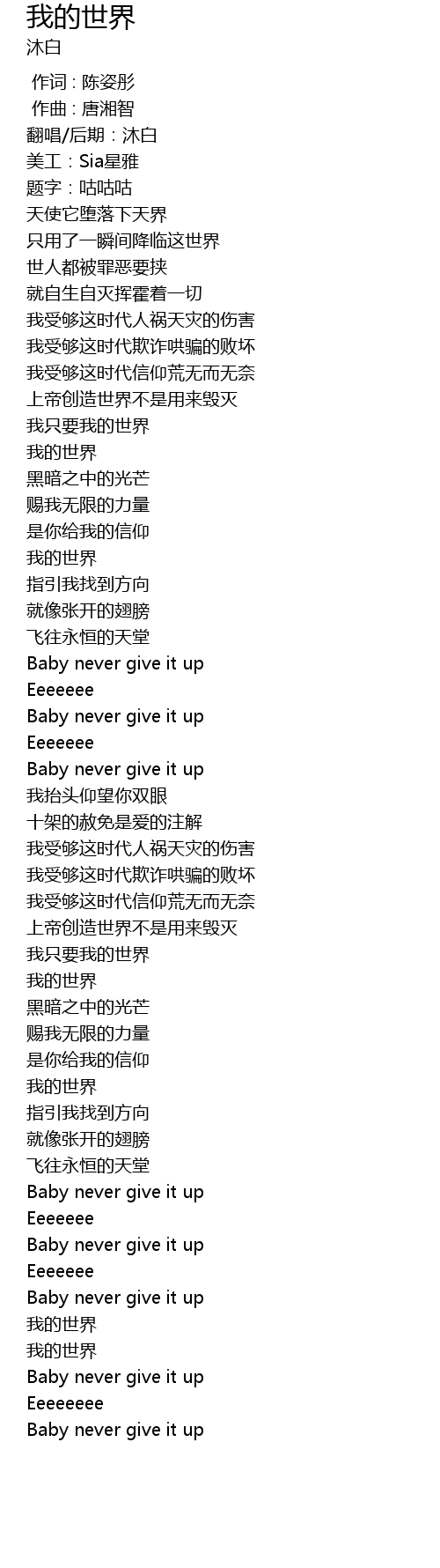 | [01:01.179] | shàng dì chuàng zào shì jiè bú shì yòng lái huǐ miè |