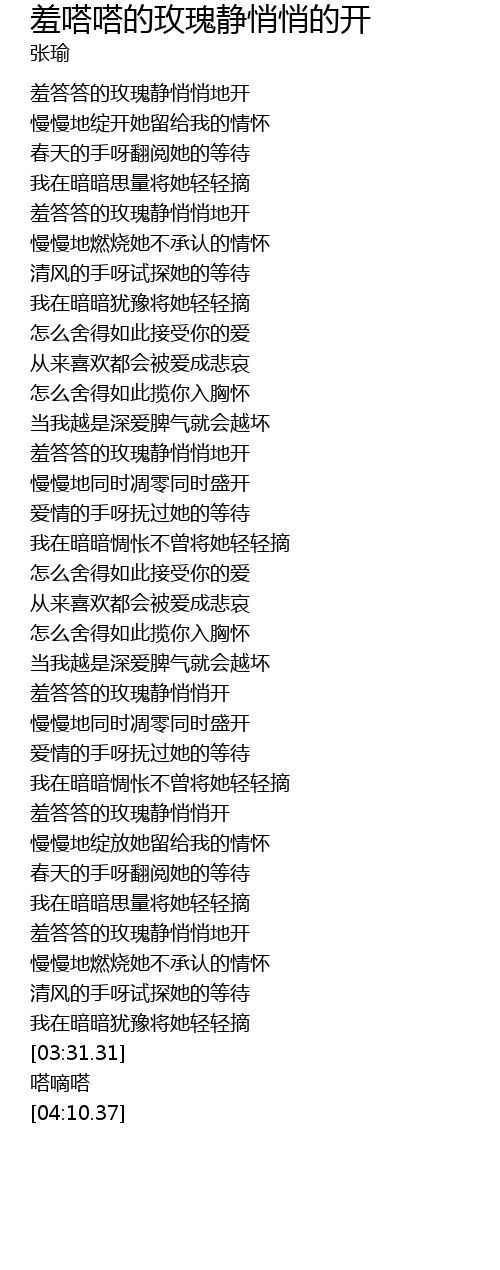 | [03:11.67] | 羞答答的玫瑰静悄悄地开 |