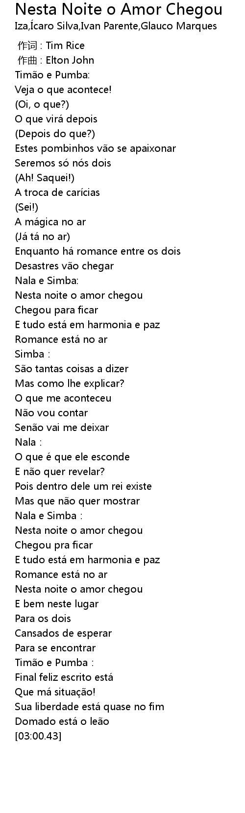 | [00:57.21] | E tudo esta em harmonia e paz |