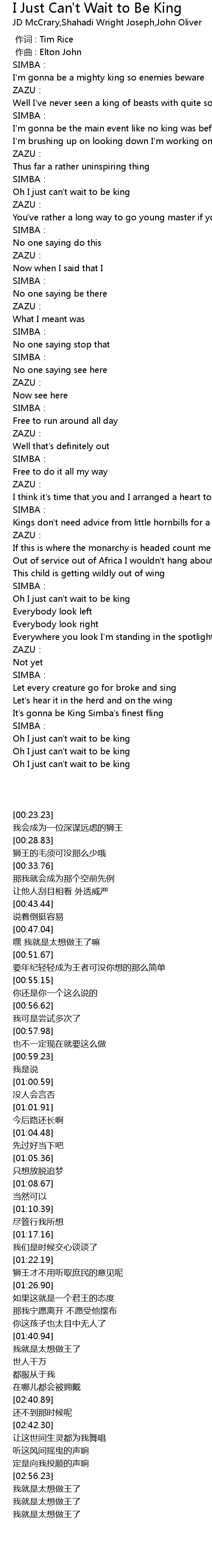 | [03:01.60] | Oh I just can't wait to be king |