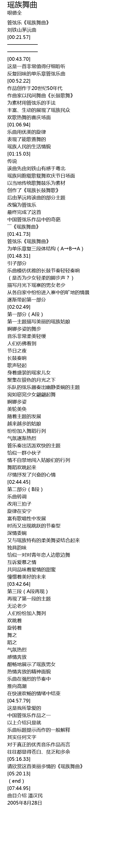 | [01:40.05] | ――《瑶族舞曲》 |