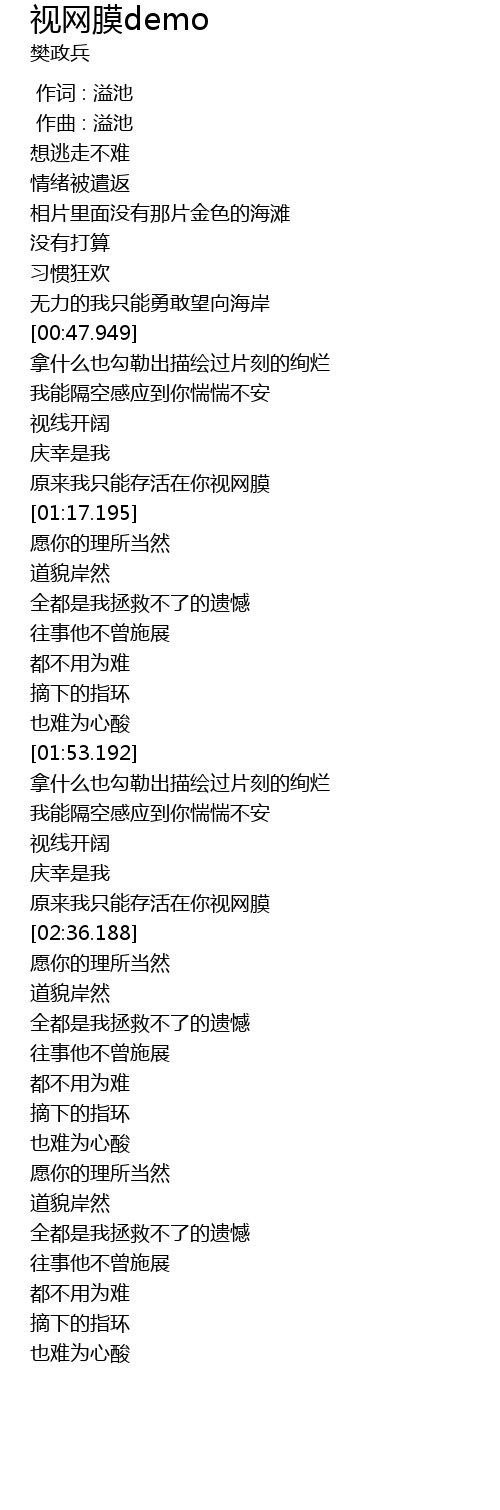 | [02:27.687] | 原来我只能存活在你视网膜 |
