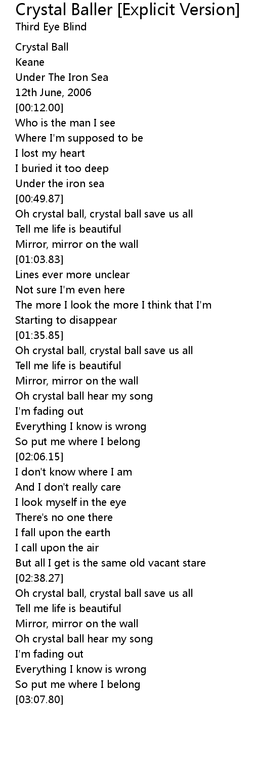 Oh crystal ball hear my song |