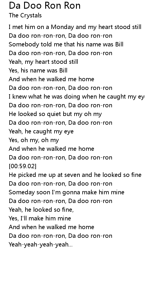 [00:58.13] Da doo ron-ron-ron, Da doo ron-ron