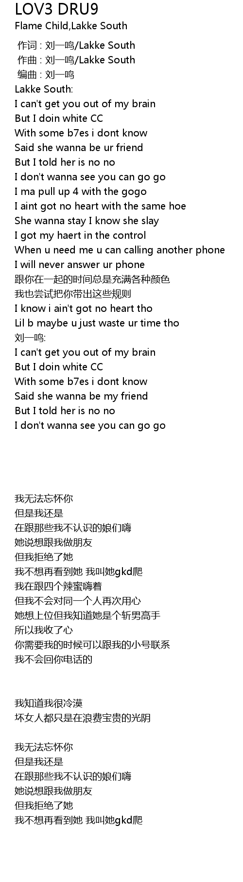 | [00:00.000] | 作词 : 刘一鸣/Lakke South |