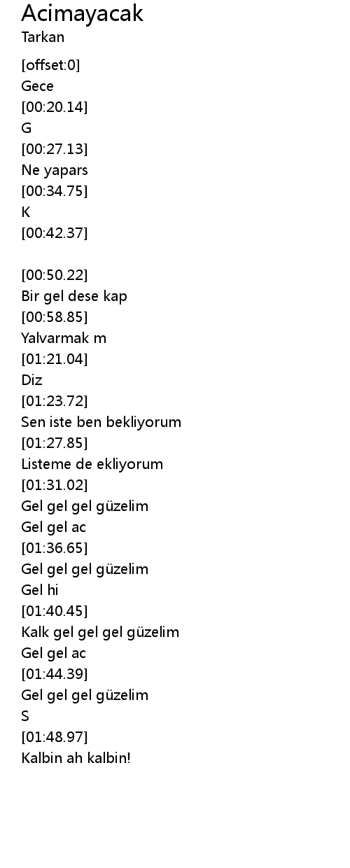 [00:39.19] Kz ilik gibi ne dese boynum kldan ince