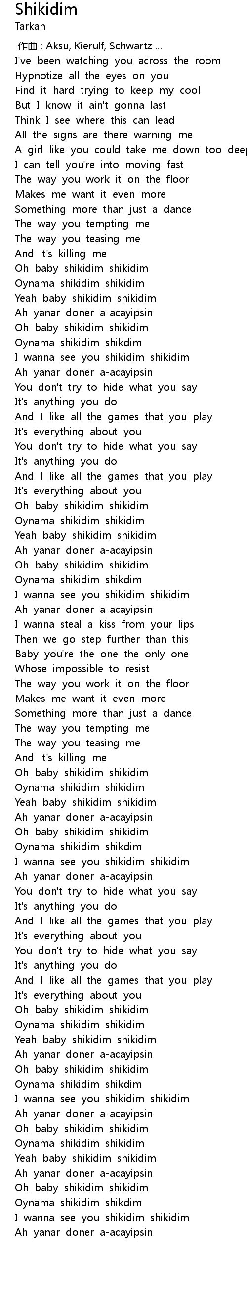 | [03:44.497] | Oh baby shikidim shikidim |