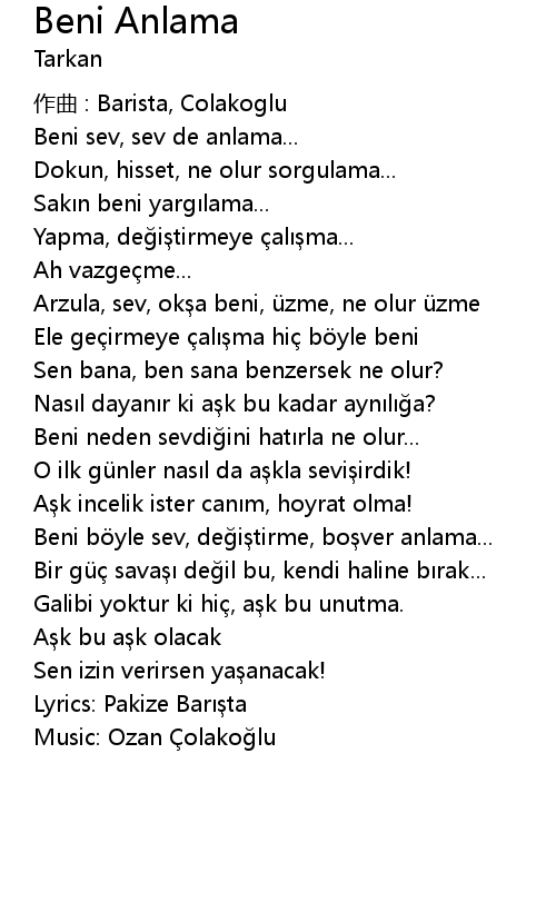 | Arzula, sev, ok a beni, ü zme, ne olur ü zme | |