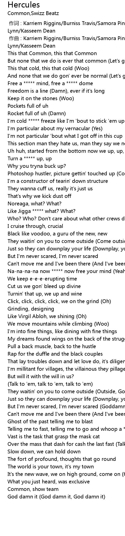 | [00:43.27] | Photoshop hustler, picture gettin' touched up (Common) |
