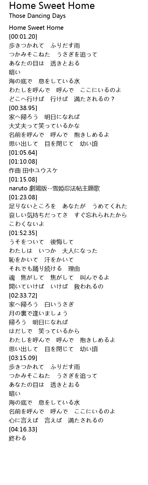 | [02:33.84] | 家へ帰ろう 白いうさぎ |