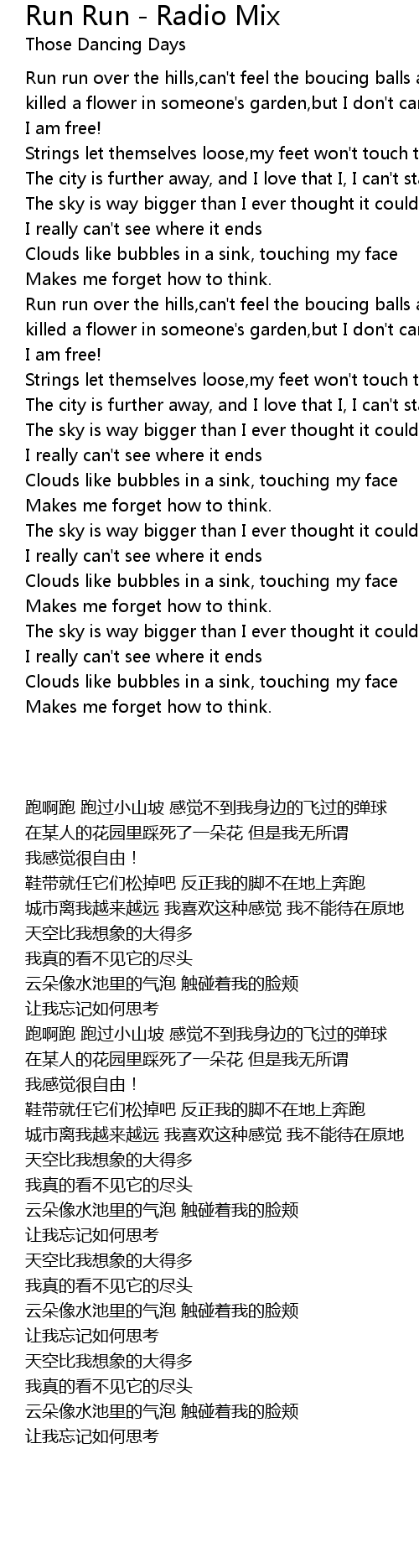 Run run over the hills,can't feel the boucing balls around me |
