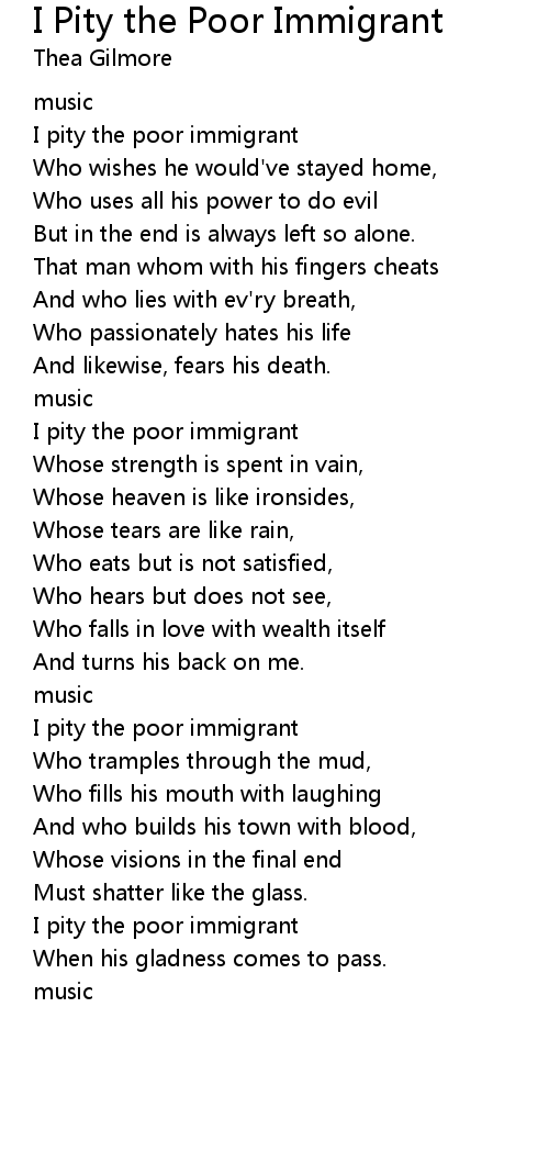 I Pity the Poor Immigrant Lyrics