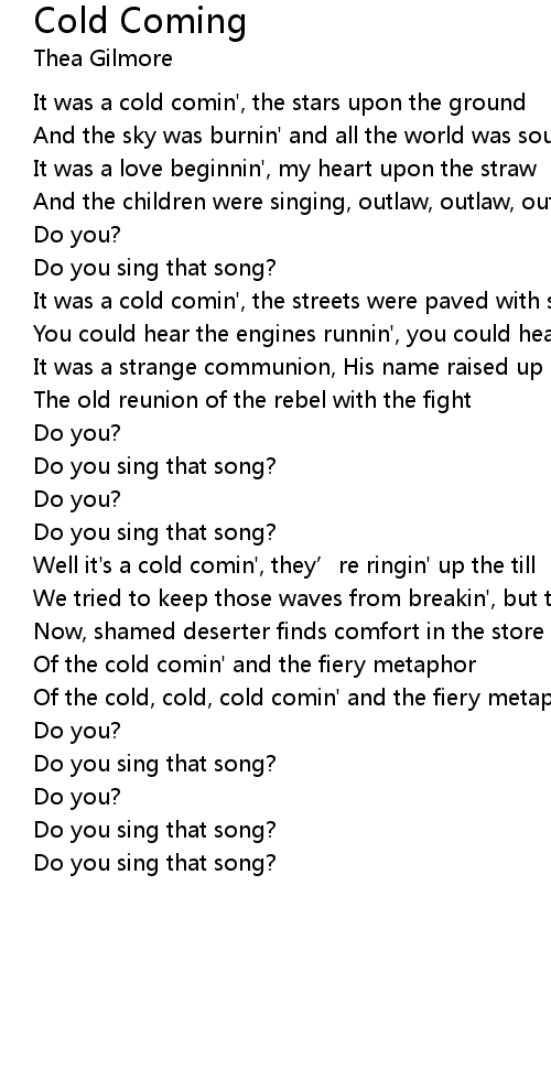 | Song | Cold Coming |