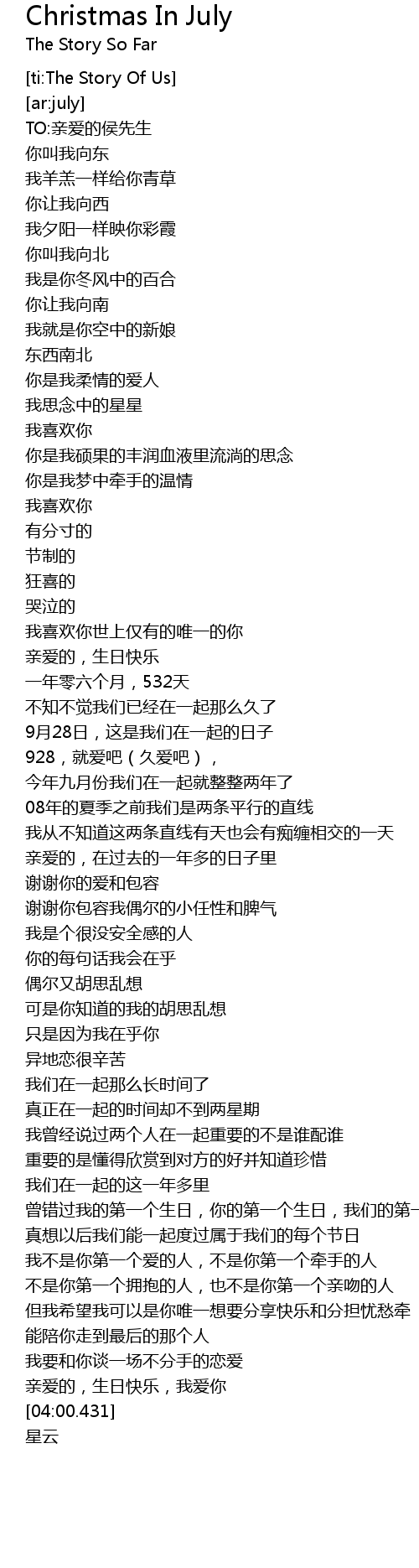 | [02:57.726] | 曾错过我的第一个生日,你的第一个生日,我们的第一个情人节 |