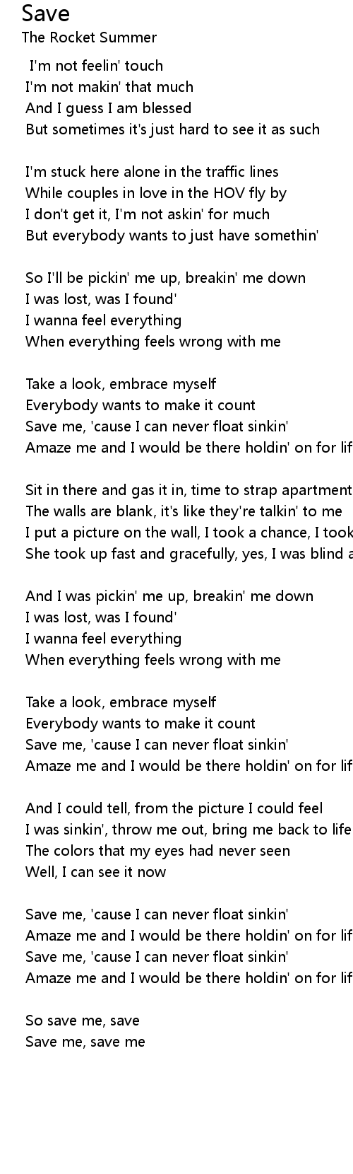 Save me, 'cause I can never float sinkin' |