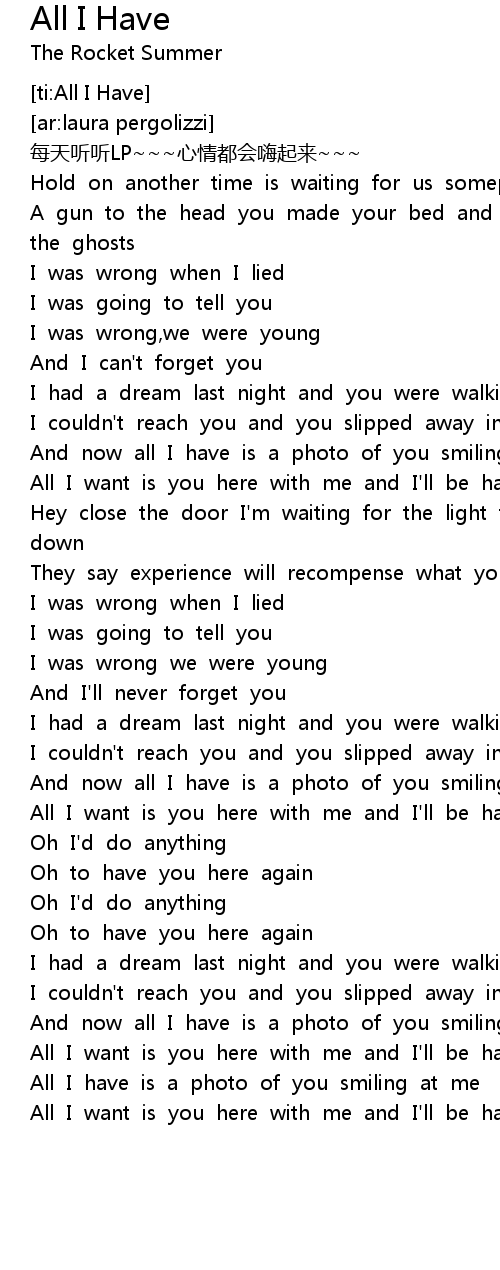 | [03:27.465] | All I have is a photo of you smiling at me |