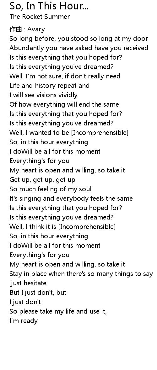 | Song | So, In This Hour... |