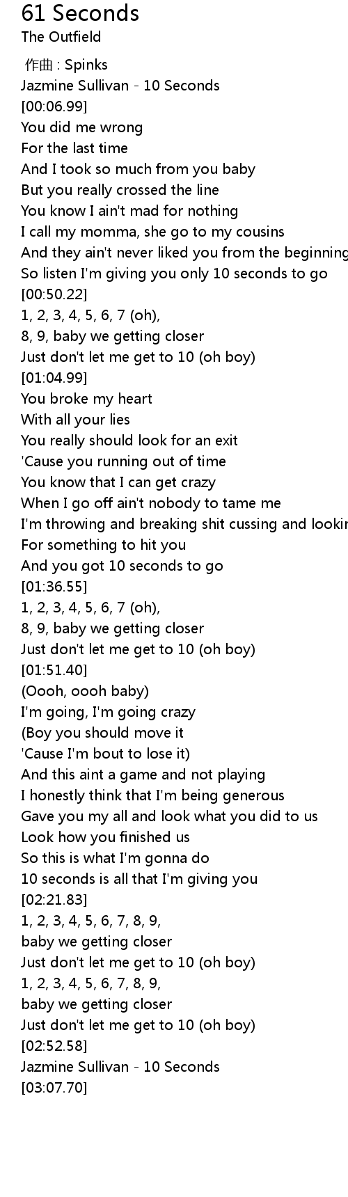 | [03:05.72] | Jazmine Sullivan 10 Seconds |