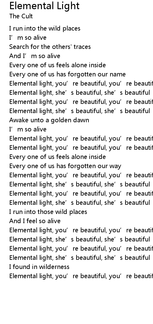 | Elemental light, you' re beautiful, you' re beautiful | |