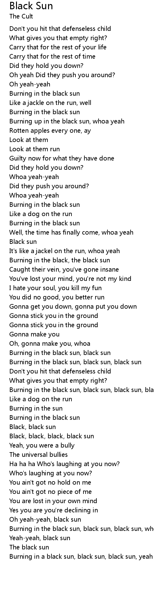 | Burning in the black sun, black sun, black sun, black sun, black sun | |