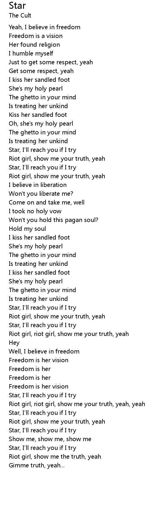 | Riot girl, riot girl, show me your truth, yeah, yeah | |