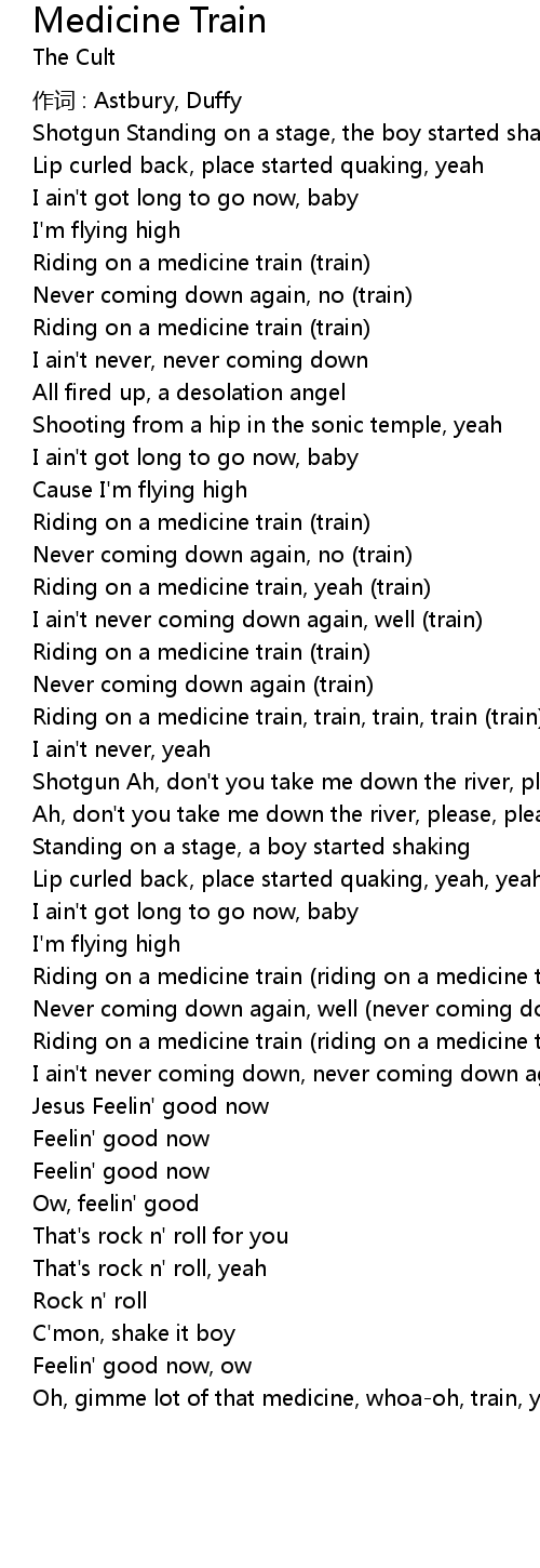 | Oh, gimme lot of that medicine, whoaoh, train, yeah |