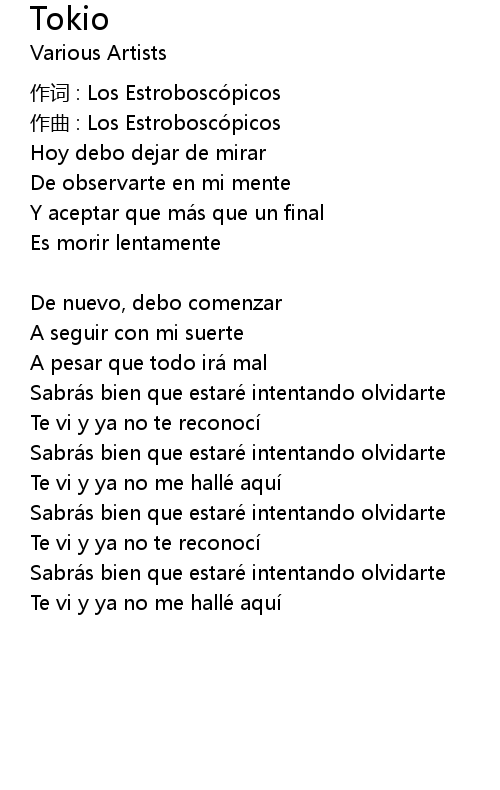 | 作词 : Los Estroboscópicos | |