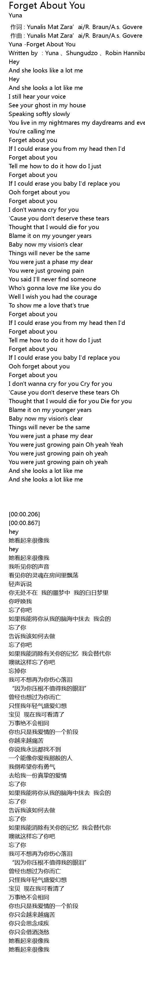 | [00:00.206] | Yuna -Forget About You |