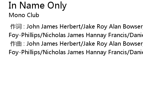 | [00:00.00-1] | zuò qǔ : John James Herbert Jake Roy Alan Bowser Lyla FoyPhillips Nicholas James Hannay Francis Daniel Edward Bell Kyle Luke Hall |