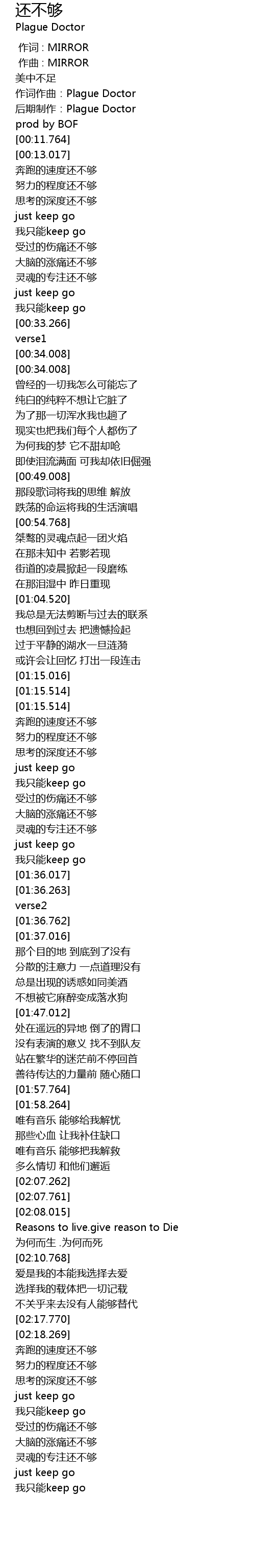 | [00:06.760] | 作词作曲:Plague Doctor |