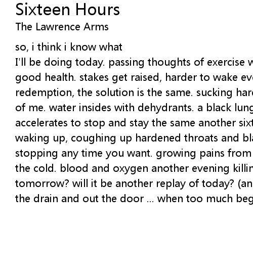 I'll be doing today. passing thoughts of exercise while i laugh in the face of good health. stakes get raised, harder to wake every day. embarrassment fuels redemption, the solution is the same. sucking hard on the death, suck life out of me. water insides with dehydrants. a black lung an ignition key another night accelerates to stop and stay the same another sixteen hours down the drain waking up, coughing up hardened throats and blackened lungs. it's easy to stop stopping any time you want. growing pains from growing old. fingertips burn from the cold. blood and oxygen another evening killing friends. will i wake up tomorrow? will it be another replay of today? (and what did you expect?) down the drain and out the door ... when too much begs for more ... |