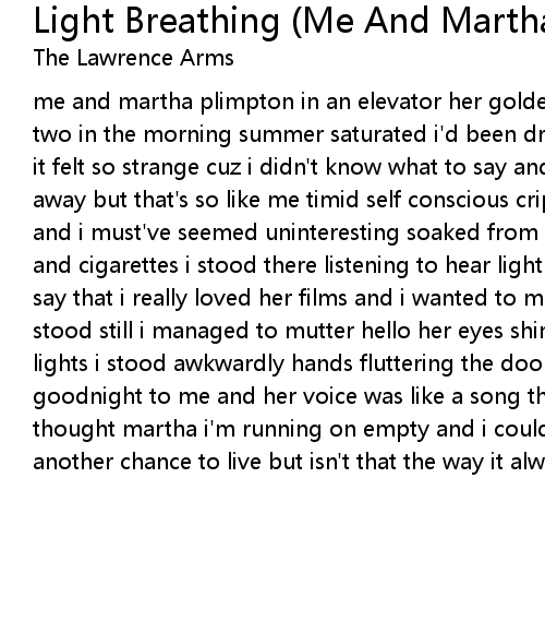Light Breathing (Me And Martha Plimpton In A Fancy Elevator) Lyrics