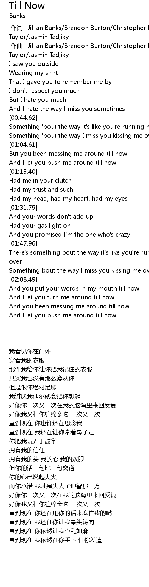 | [00:00.00] | 作词 : Jillian Banks/Brandon Burton/Christopher Michael Taylor/Jasmin Tadjiky |