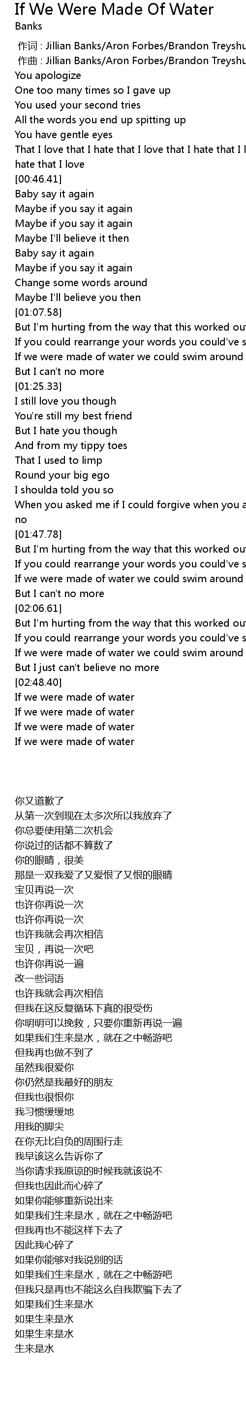 | [00:00.00] | 作词 : Jillian Banks/Aron Forbes/Brandon Treyshun Campbell |