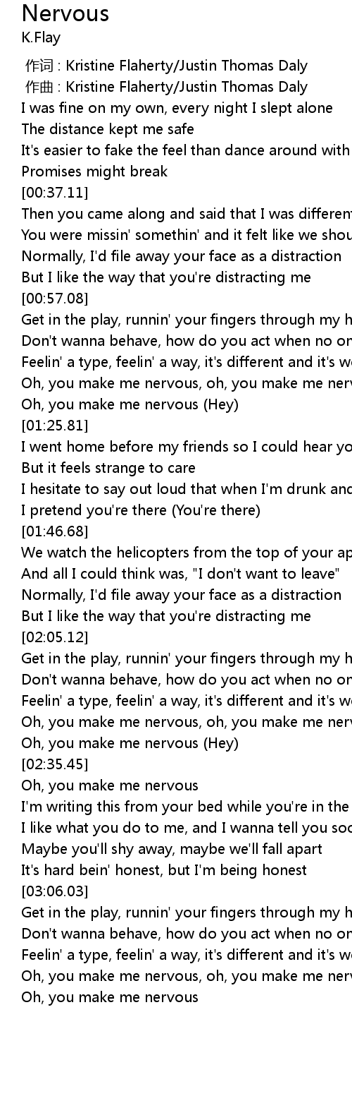 | [02:23.35] | Oh, you make me nervous, oh, you make me nervous Hey |