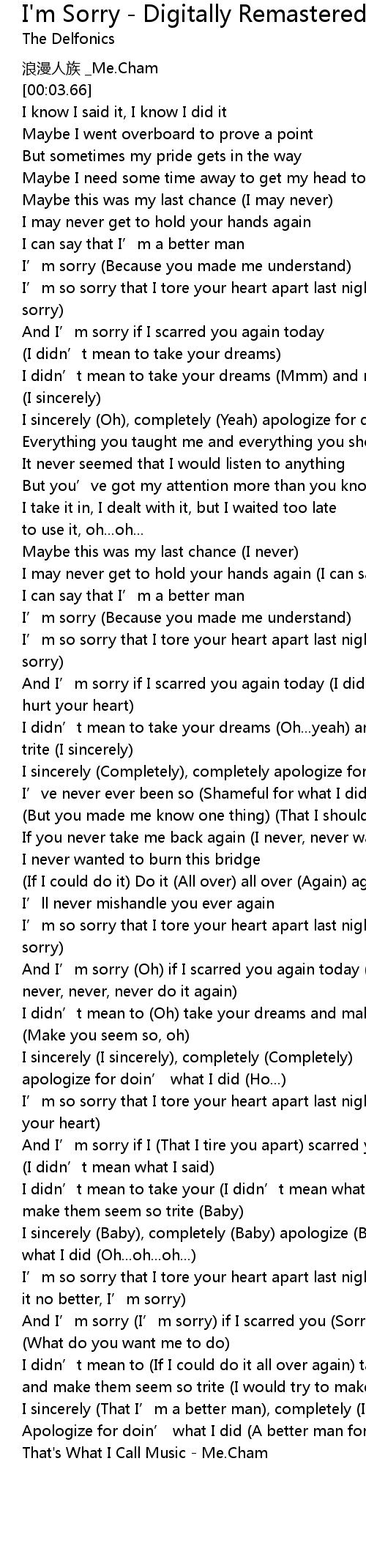 | [04:04.11] | And I' m sorry if I That I tire you apart scarred you again today I didn' t mean what I said |