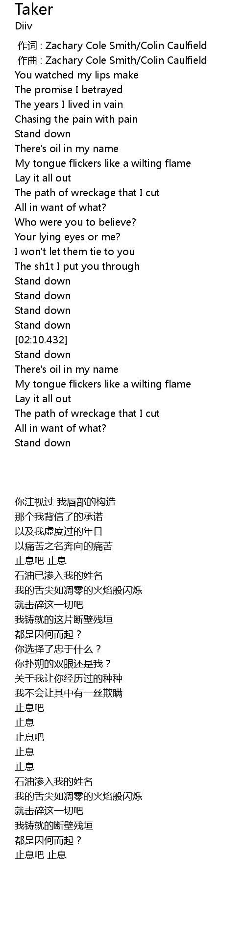 | [02:45.587] | My tongue flickers like a wilting flame |