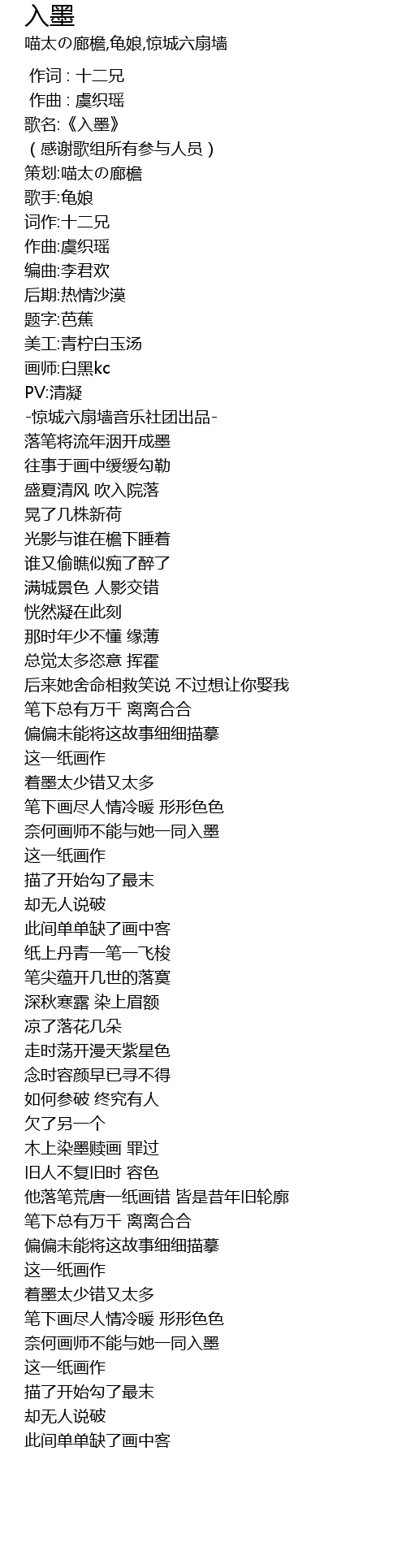 | [00:01.697] | 歌名:《入墨》 |