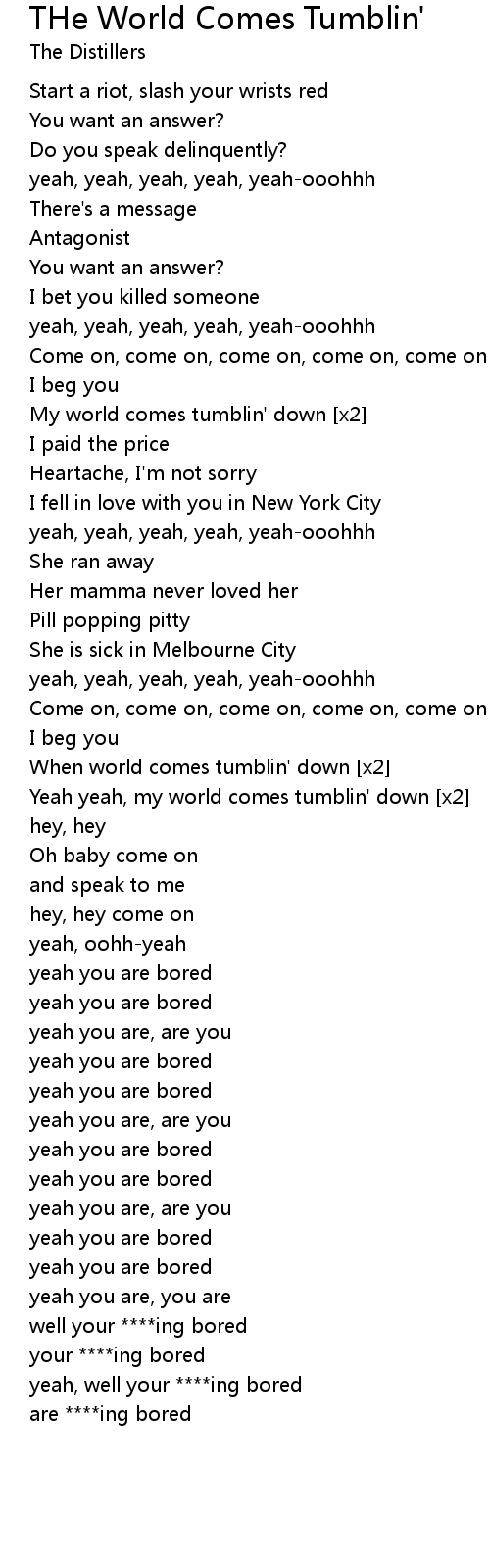 Yeah yeah, my world comes tumblin' down [x2] |