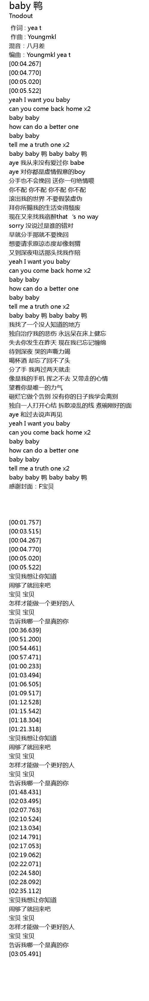 | [03:05.491] | baby baby 鸭 baby baby 鸭 |