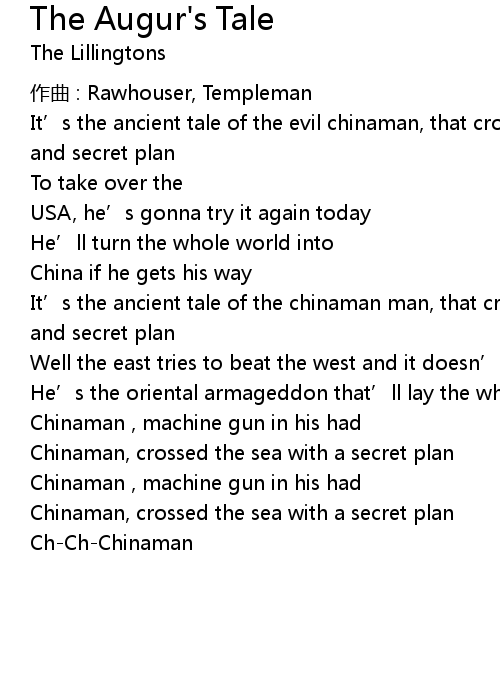| It' s the ancient tale of the chinaman man, that crossed the sea with his gun and secret plan | |