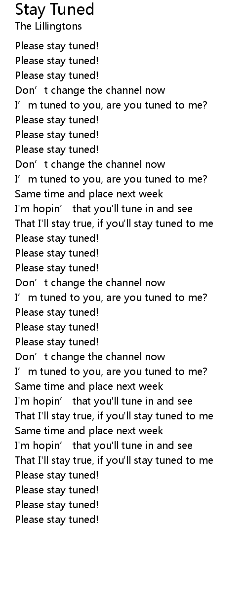 | Song | Stay Tuned |