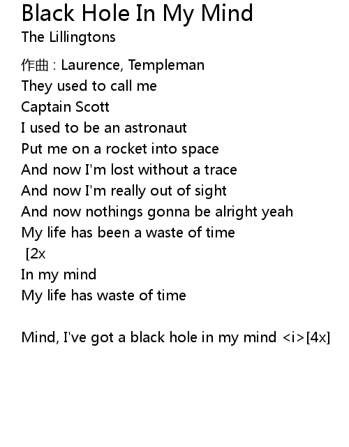| [4x] | Mind, I' ve got a black hole in my mind i |